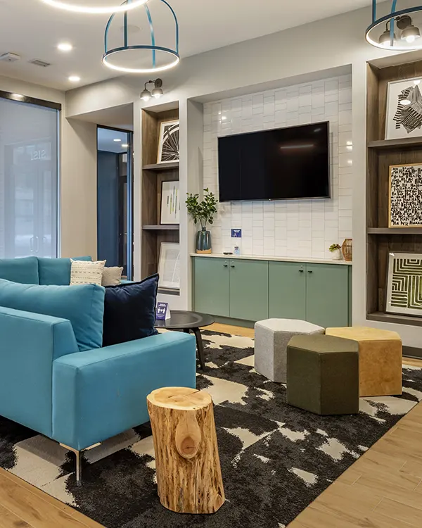 When you're ready to head inside from the pool, our Clubroom awaits. Tons of different seating options to pull up with the crew, or chill solo.